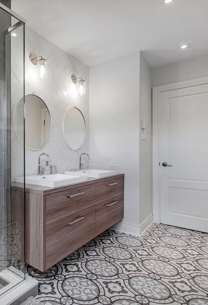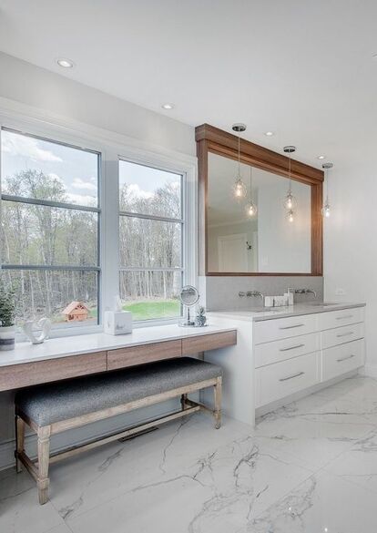 High-gloss bathroom cabinets are trending. They offer a one-of-a-kind appearance. They are composed of an MDF panel covered with an acrylic or a machined polymer. The doors can be presented as a ''Shaker'' door or as a ''Straight'' door. A large choice of glossy colors is available, which will give a contemporary style to your kitchen.