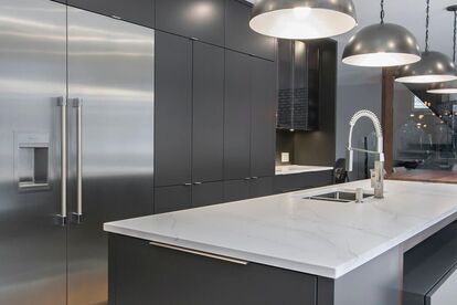 Le comptoir en quartz est le plus utilisé dans les cuisines d’aujourd’hui. Le quartz a un aspect sophistiqué et élégant. Il est offert dans une multitude de choix de couleurs et de finis qui s’harmonise parfaitement avec tous styles d’armoires. Le quartz constitue un matériel idéal pour ceux qui sont à la recherche d’un décor design et tendance.
