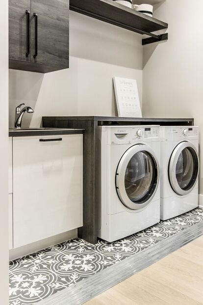 DES ARMOIRES DE SALLE DE LAVAGE EN MÉLAMINÉ SUR-MESURE