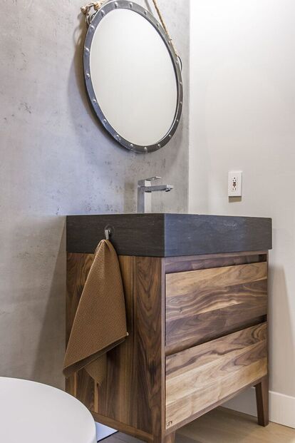 NOUS CONCEVONS AVEC VOUS VOS ARMOIRES DE SALLE DE BAIN EN PLACAGE DE BOIS SUR-MESURE